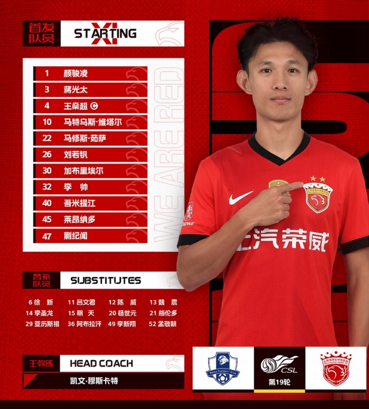 2025华润饮料中超联赛第19轮梅州客家vs上海海港,本日首发名单。