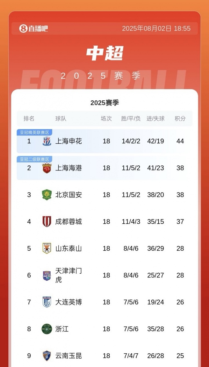 申花在积分榜积44分向上排行第9的玉昆19分,但玉昆凭借高原主场上风已赢得主场五连胜,此刻申花半场1-3过期。