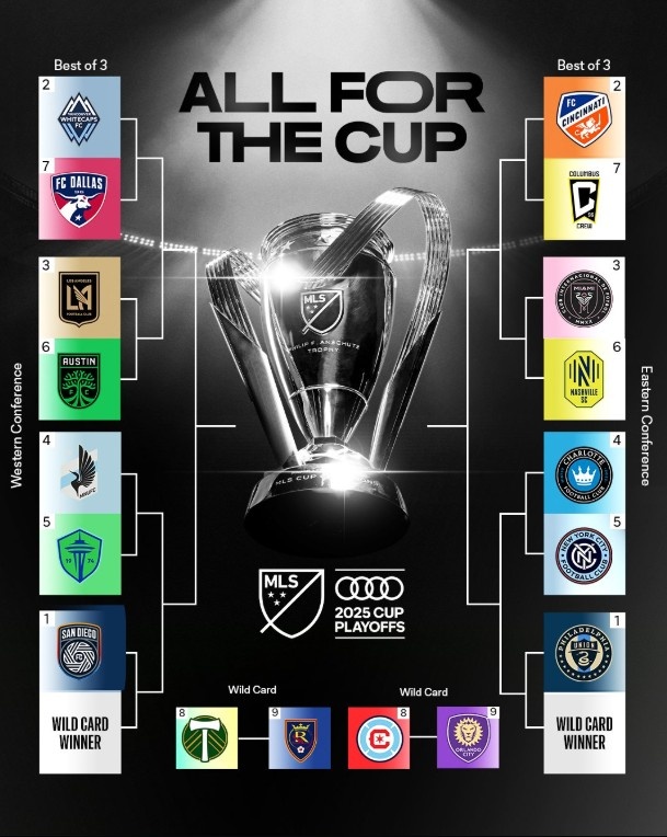 东区:辛辛那提FC(2)vs哥伦布机员(7)、迈阿密国际(3)vs纳什维尔(6)