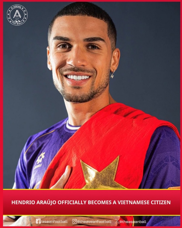 10月16日讯 据ASEAN FOOTBALL报说念,降生于巴西的31岁中场球员亨德里奥-阿劳若-达-席尔瓦已负责获取越南公民身份,并取了一个当地名字杜黄轩(Đỗ Hoàng Hên)。
