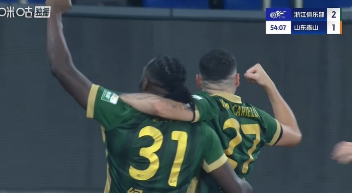 10月18日讯 中超第27轮,浙江镇守主场对阵山东泰山,下半场第54分钟,奥乌苏接球后丝滑回身+右脚爆射破门,浙江2-1反超泰山。