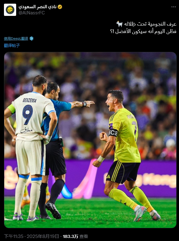 赛后,利雅得告捷官方账号晒出C罗和本泽马同框像片,何况配文:他在他的暗影下,知谈了球星的脾气。是以他今天觉得我方是最佳的?