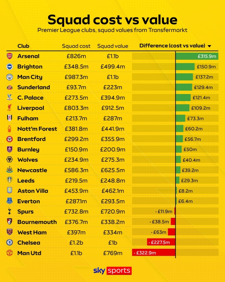 08月27日讯 天外体育基于德转数据,清点了英超各队威望的威望资本,现时的价值,以及比较之下球队威望价值的变化。其中,阿森纳威望升值最多,曼联赔本最多。以下是具体数据,单元为镑。