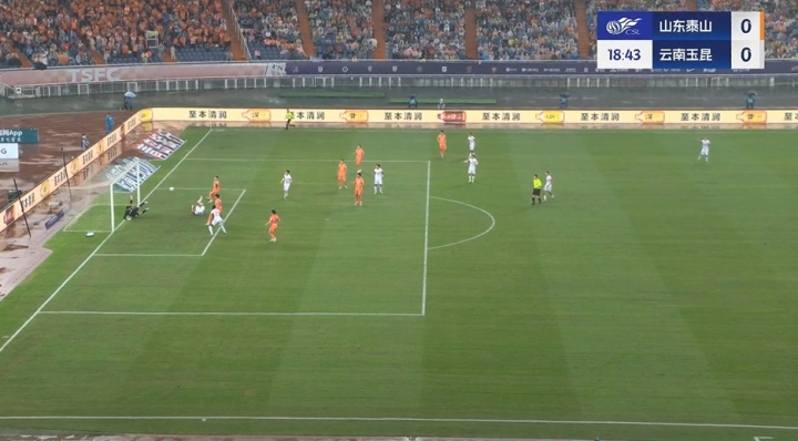 比赛第18分钟,玉昆边路起球传中,叶楚贵近距离头球攻门被王大雷挡出。