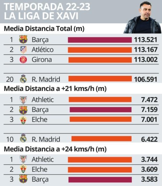 那么,球员的体能景象何如呢?在稽查连年来巴萨跑动数据后的初步论断是,在取得联赛冠军的年份,不管是哈维如故弗里克握教,球队齐在体能方面阐扬出色。