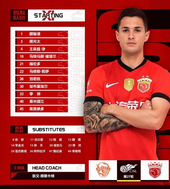 2025华润饮料中超联赛第27轮青岛海牛vs上海海港,当天首发名单