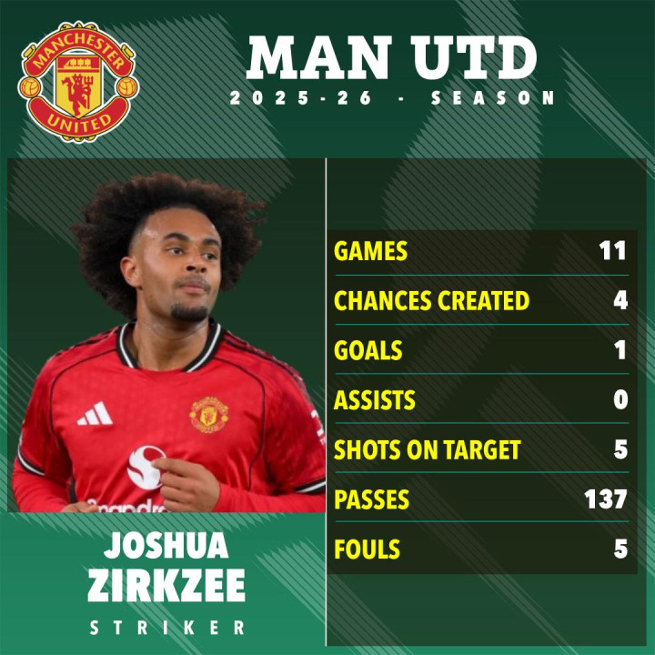 24岁的王人尔克泽,于2024年从博洛尼亚加盟曼联,转会费高达3650万英镑,但球场证据完满未达到预期,上赛季英超出场33次,打进3球助攻1次,本赛季出场11次打进1球拿到一张黄牌,后果依旧低下。