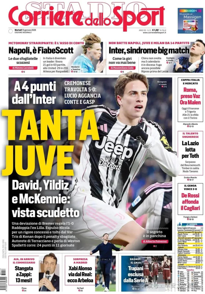 1、尤文,你奈何能不自信呢?5比0战胜克雷莫内塞,这在国内一经10年莫得发生过了。与罗马、那不勒斯比肩第三名,距离榜首只差4分,球迷们梦念念联赛冠军。在以前的六场比赛中取得了五场告捷:比赛立场和信心。风向似乎转换了:布雷默的侥幸进球,大卫再次得分,对红黄军团的点球被取销(尼古拉被罚下)。伊尔迪兹点球补射得分,特拉乔诺自摆乌龙,麦肯尼完成了大捷。斯帕莱蒂:“我看了海外米兰与那不勒斯的高水准对决,咱们仍然需要成长,但若是咱们迈出这些步调,咱们不错得回一些东西。”防地补强,明格萨浮出水面。