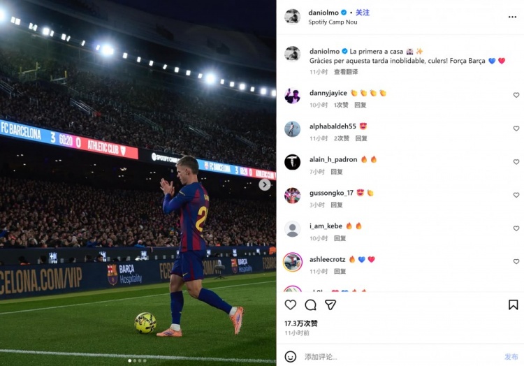 他也在赛后通过社媒晒出我标的球迷们饱读掌问候的像片,并配文:“回家后的首场比赛🏟️✨感谢巴萨球迷们带来这个令东说念主难以忘怀的下昼,巴萨前进!”